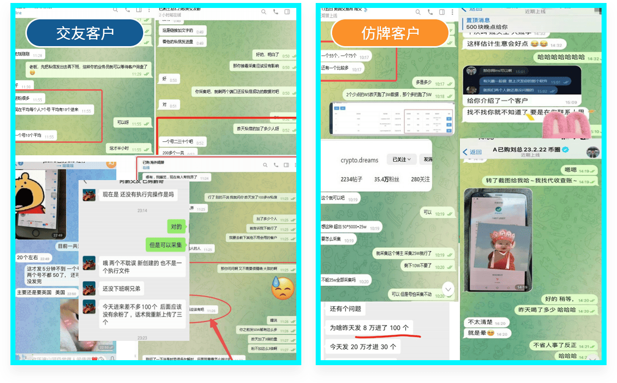 通过采集并筛选过的数据 给这些人发送私信 1个号可以给100+用户发送私信 可以发送名片/视频/文字/图片