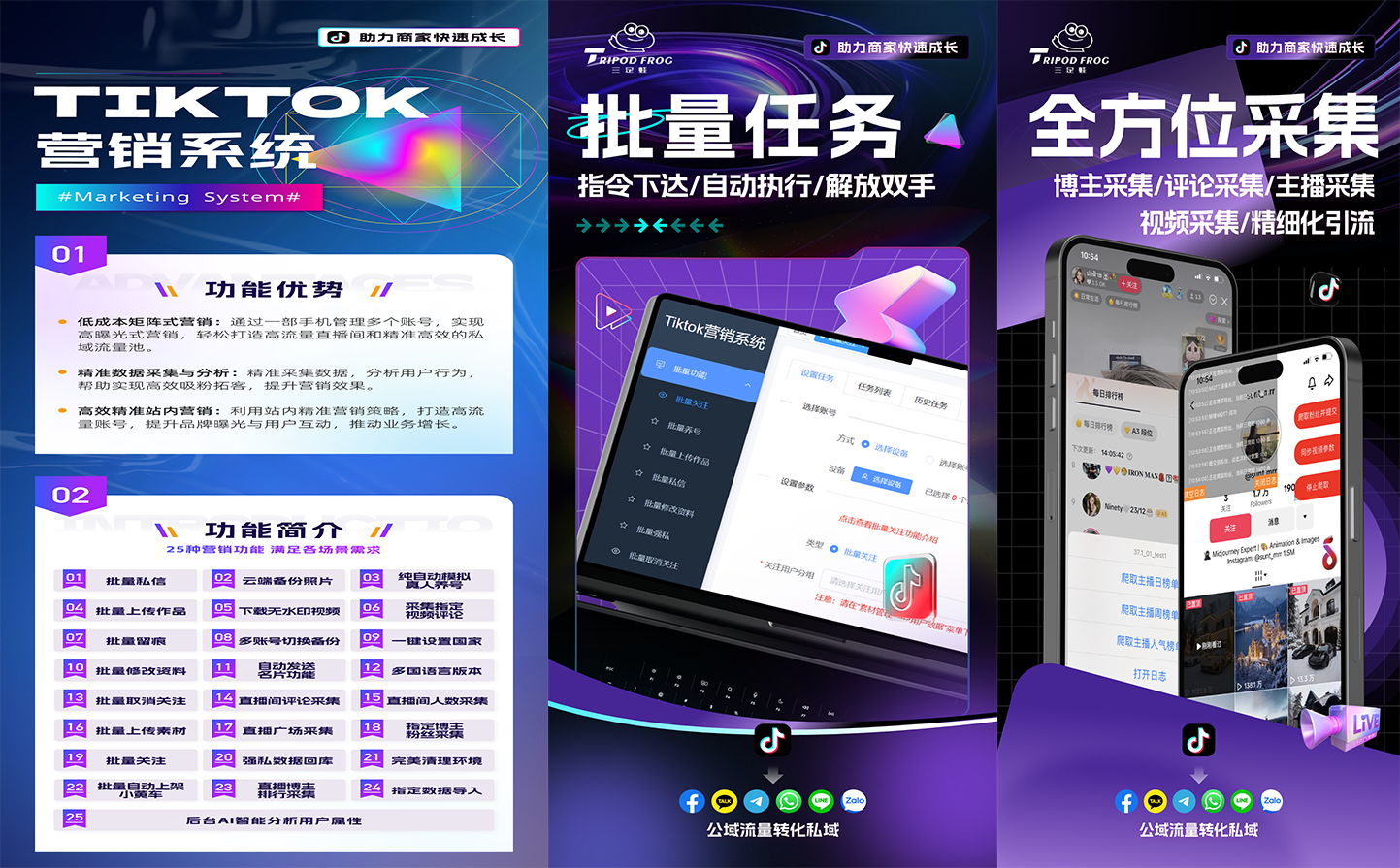 批量化自动化》注册/登录/扫号/编辑资料/私信/关注/上传视频/混剪/智能养号/开通橱窗/访问留痕/数据分析等